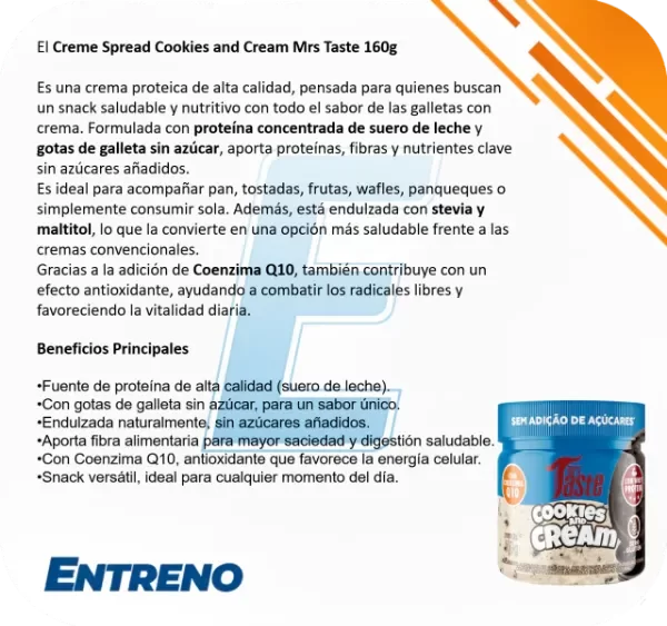 Mrs Taste Creme es la crema untable proteica perfecta para quienes buscan un snack delicioso y saludable que combina sabor irresistible con nutrición inteligente.