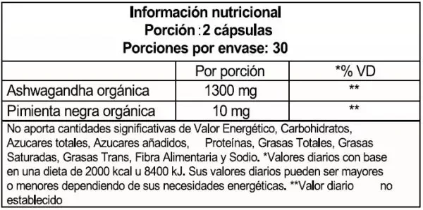 Esta poderosa fórmula se completa con Pimienta Negra orgánica, la cual aumenta la absorción de la Ashwagandha en el organismo.